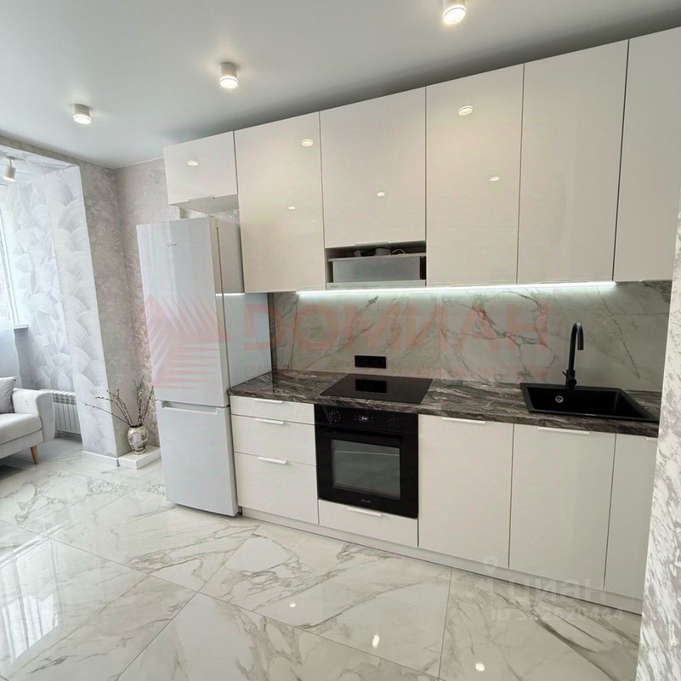 Kуxня oборудованнaя вcей нeoбхoдимой вcтроeннoй бытовой теxникой, устaновлeн дивaн. инвертоpнaя сплит-системa, телевизор.