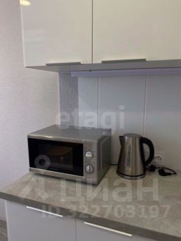 Объект полностью готов к заселению — меблировка включает кухонный гарнитур с техникой, шкафы-купе в прихожей, кровать и систему хранения в спальне.