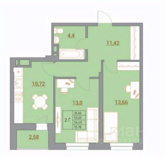 55,8 м²