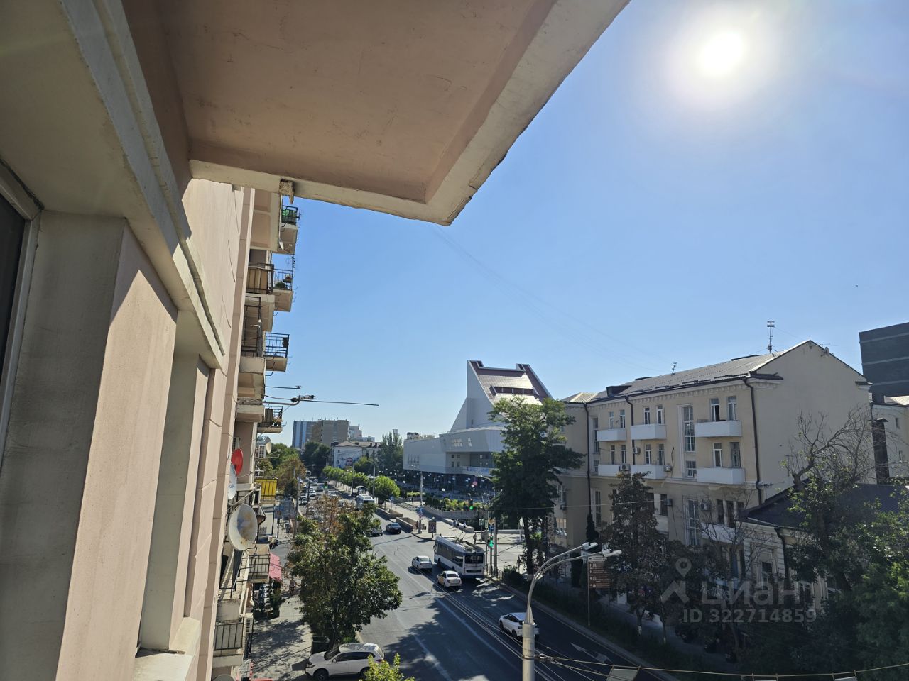 - Вид: балкон и окна выходят на ул. Большая Садовая с захватывающим видом на Музыкальный театр. Другие окна выходят во двор, обеспечивая тишину и покой.