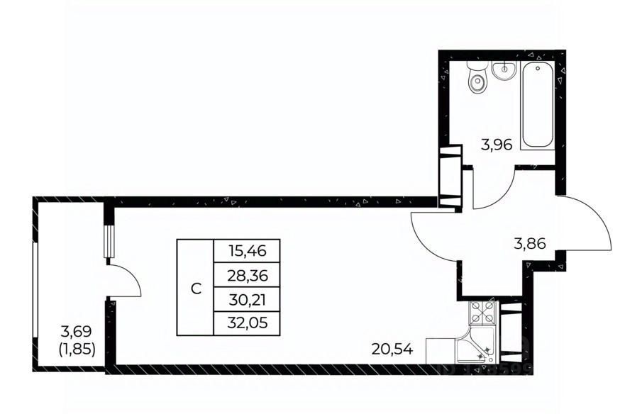 Общая площадь32,05 м²