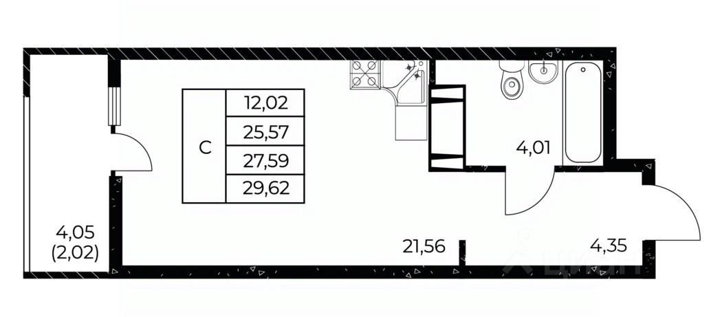 Общая площадь29,62 м²