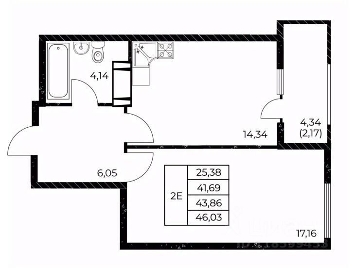 Общая площадь46,03 м²