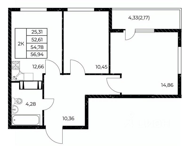 56,94 м²