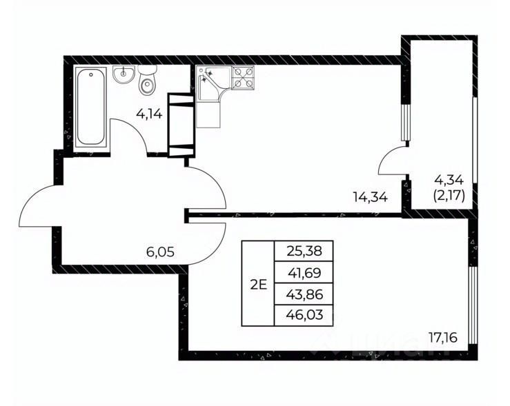 Общая площадь46,03 м²
