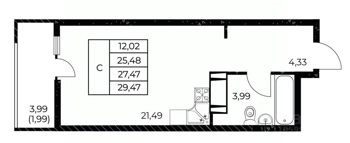 Общая площадь29,47 м²