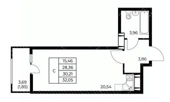 Общая площадь32,05 м²