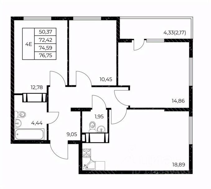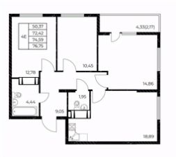 Общая площадь76,75 м²
