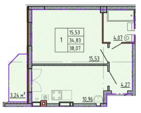 Продается 1-комн. квартира, 38,07 м²