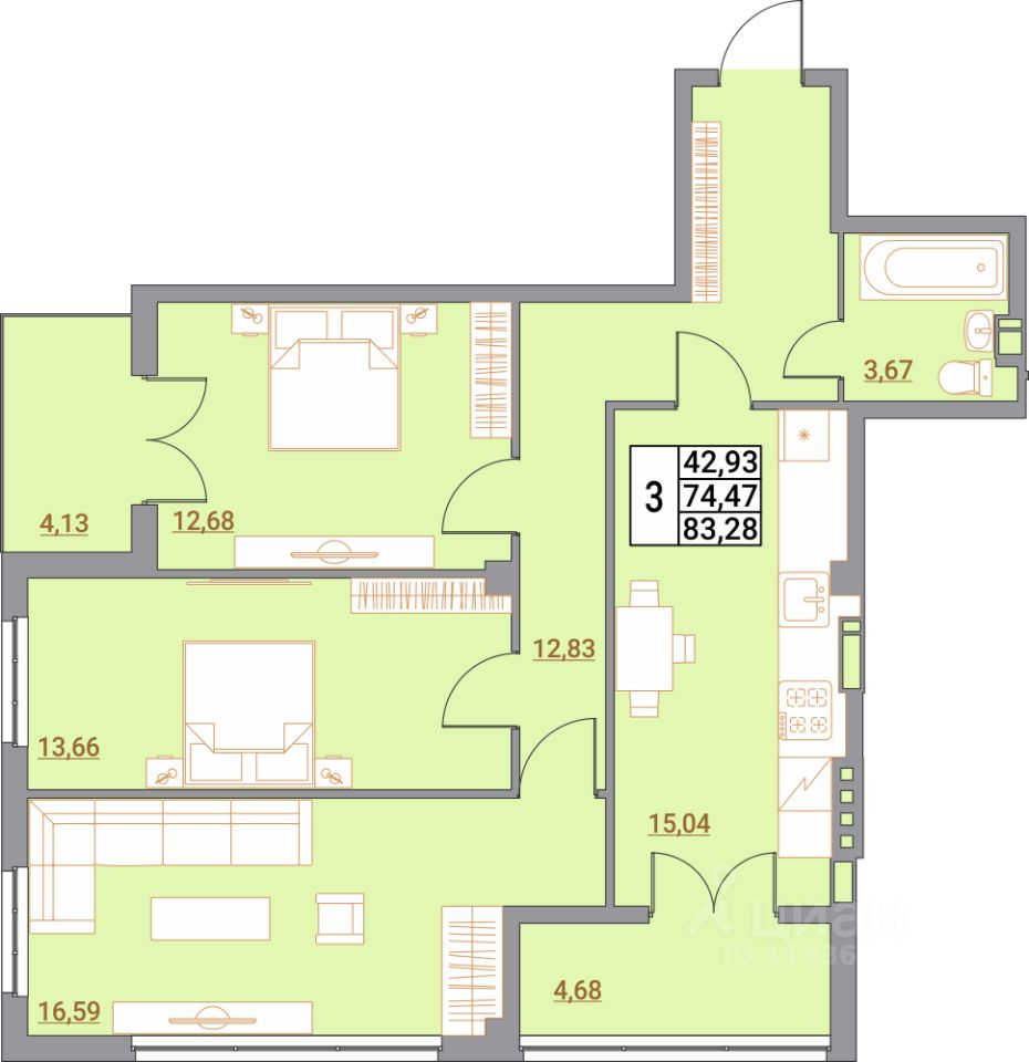 Общая площадь83,32 м²