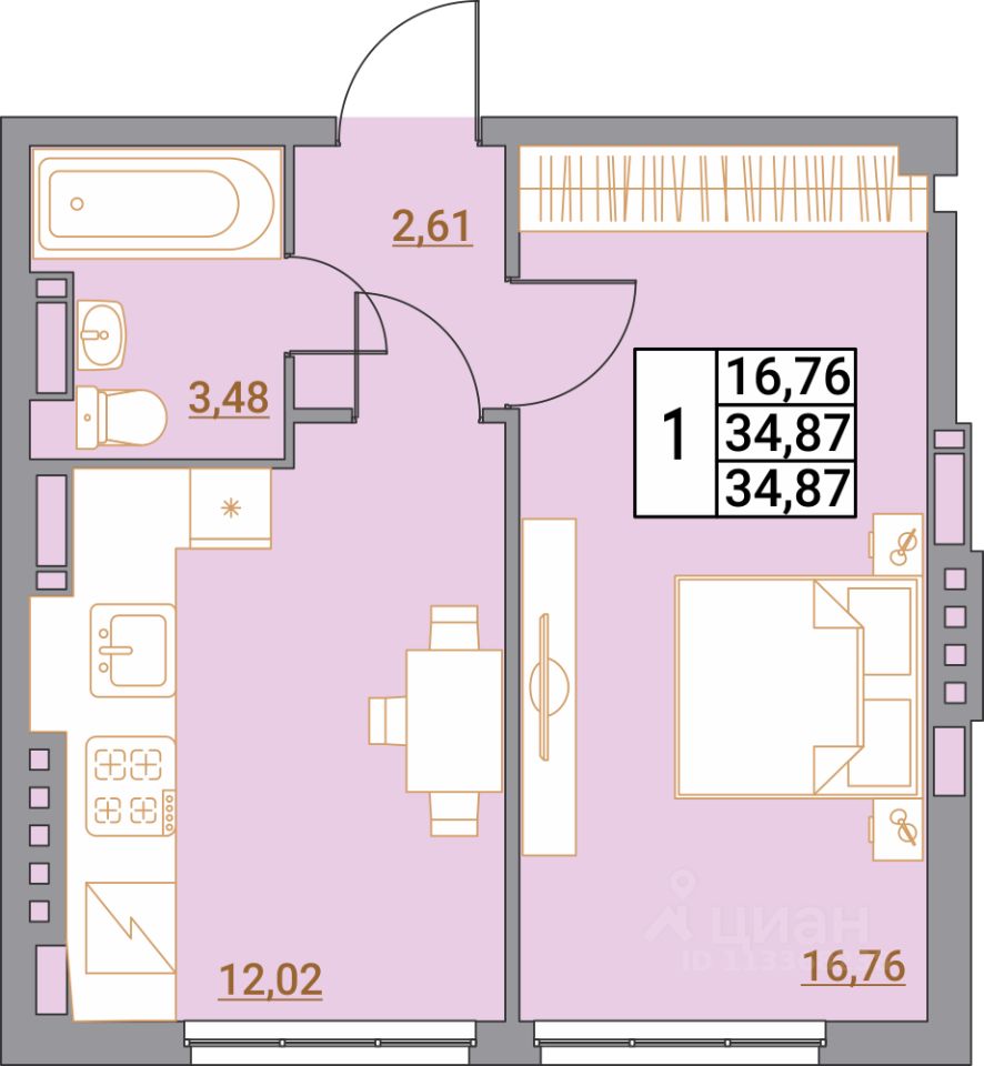 Продается 1-комн. квартира, 38,02 м²