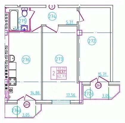 Продается 2-комн. квартира, 61,7 м²
