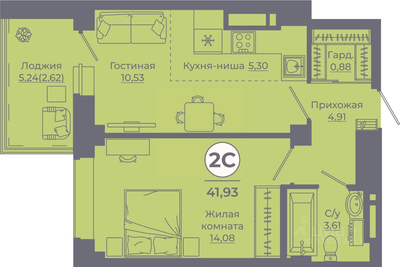 Общая площадь41,55 м²