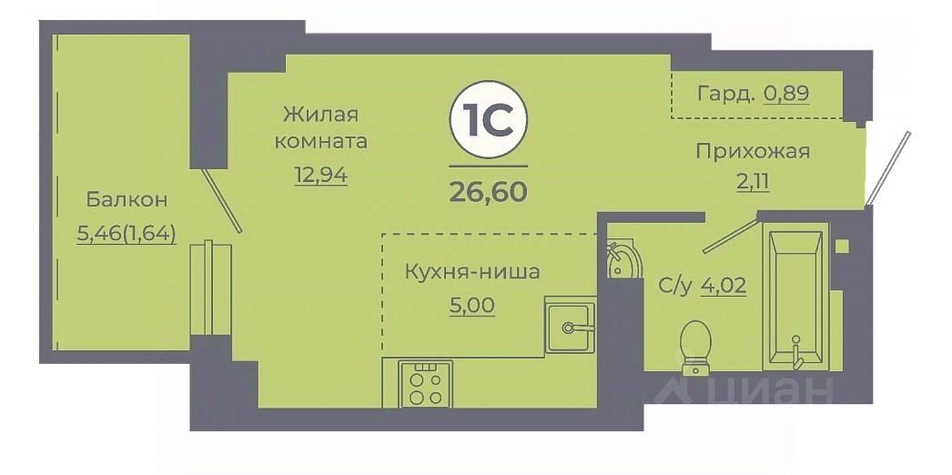 Общая площадь27,49 м²