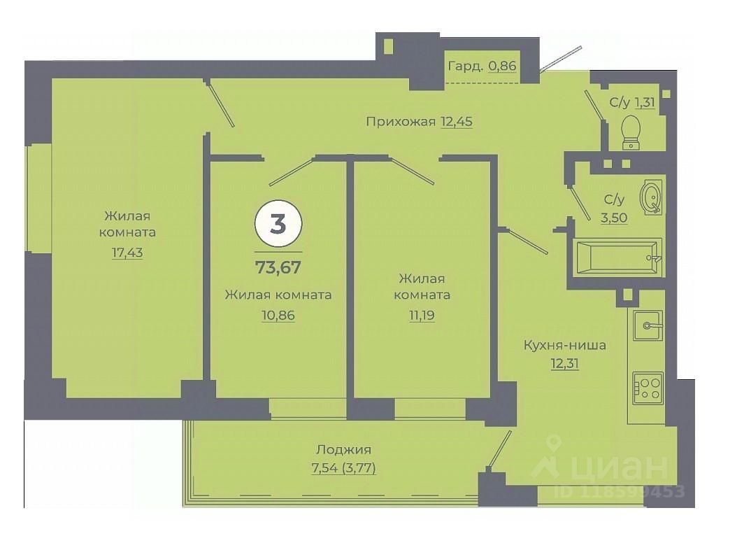 Общая площадь73,45 м²