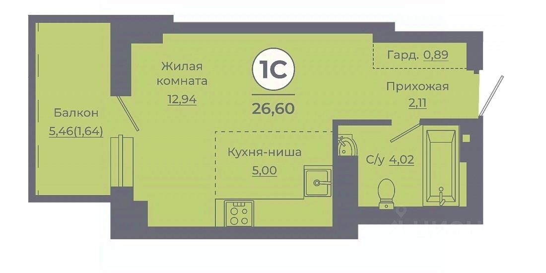 Общая площадь27,3 м²