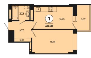 Общая площадь38,48 м²
