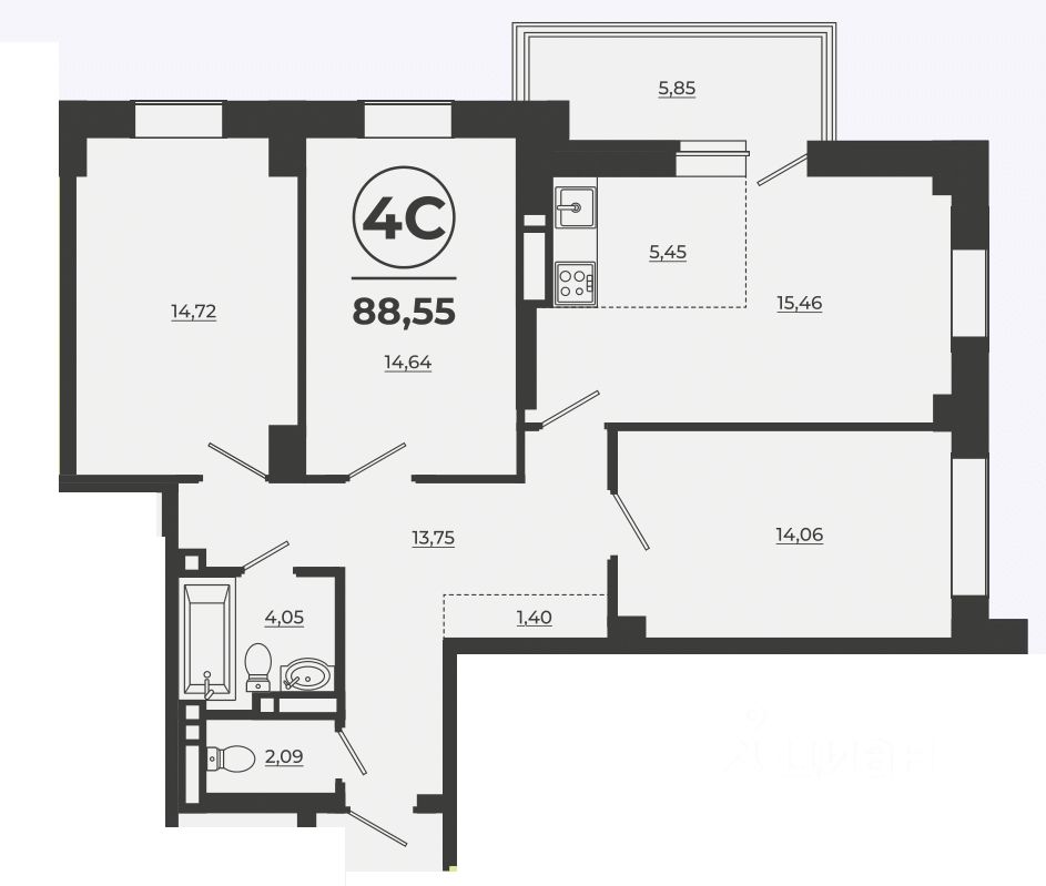 Общая площадь88,25 м²