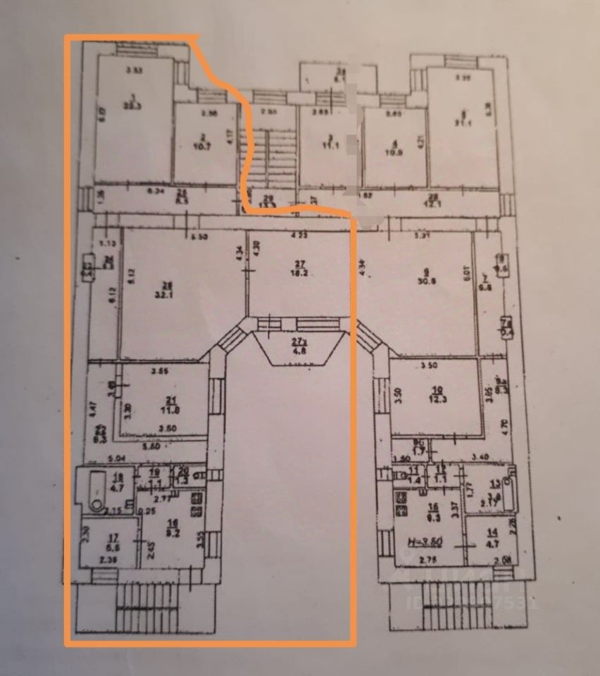 Продаётся огромная квартира 142кв.м. с роскошной планировкой в самом Центре Ростова в купеческом доме! Квартира на 3-м этаже 4-х этажного кирпичного дома с толстыми стенами и высокими потолками 3,5 метра. Центральное отопление, капремонт дома произведён 5 лет назад с заменой всех труб холодной и горячей воды, радиаторов, канализационных узлов. В квартире два входа: парадный из подъезда и по лестнице со двора, что даёт возможность оформить квартиру под коммерцию, хостел и т.п., а также разделить на зоны. Окна с балконом выходят в ухоженный закрытый двор. Вся инфраструктура Центра в двух шагах. Рядом с домом расположена Ростовская Филармония, 5-я гимназия, медицинский университет. Размеры комнат: 32,1; 18,2; 22,3; 10,7; 11,8; 5,5кв.м..Состояние квартиры под ремонт.