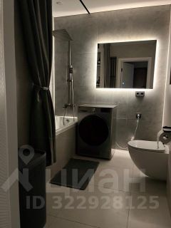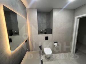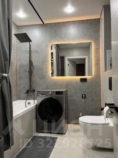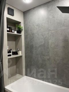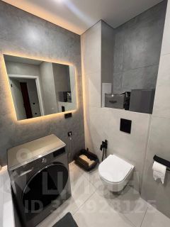 Ванная комната отделана керамогранитом, оснащена встроенной нишей для гигиенических средств, большим зеркалом с тремя режимами подсветки и качественной сантехникой.