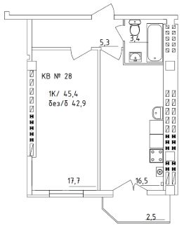 Общая площадь45,4 м²