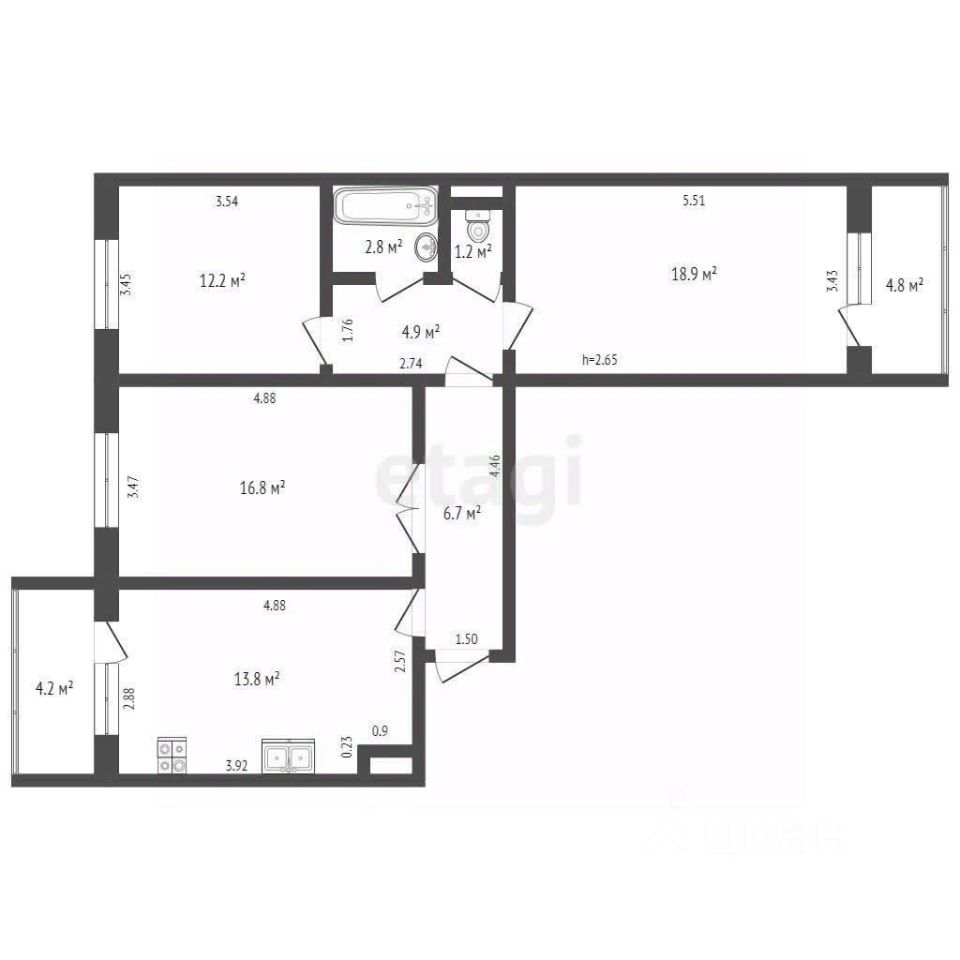 3-комнатная квартира 81.3 кв.м. с идеальным расположением! Самая большая квартира в доме. В квартире 2 лоджии и 2 подвала в каждой из них.