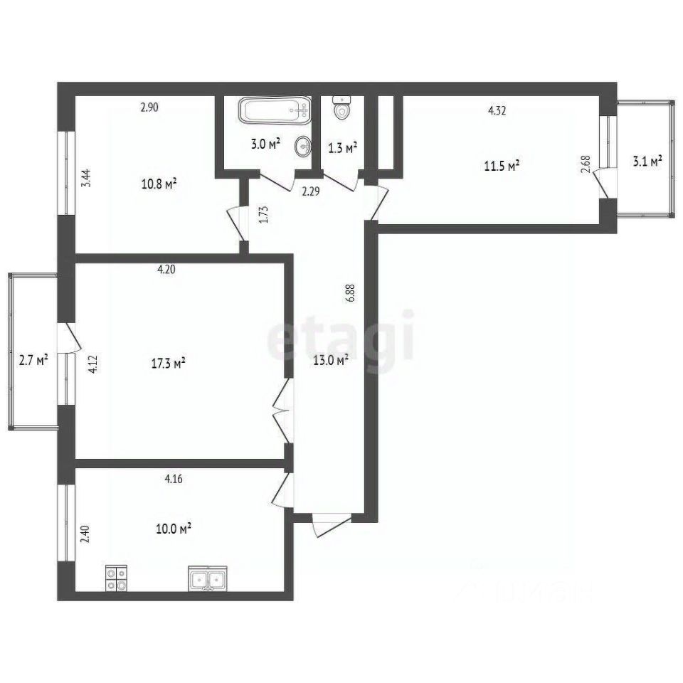 66.9 м² и кухней 10м² в качественном кирпичном доме в центре ЗЖМ.