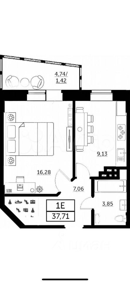 S-37,71 кв.м
