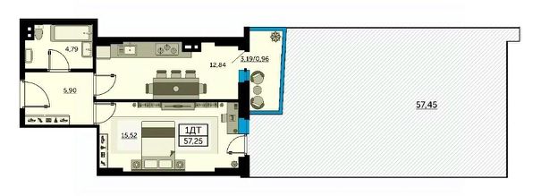 57,25 м²