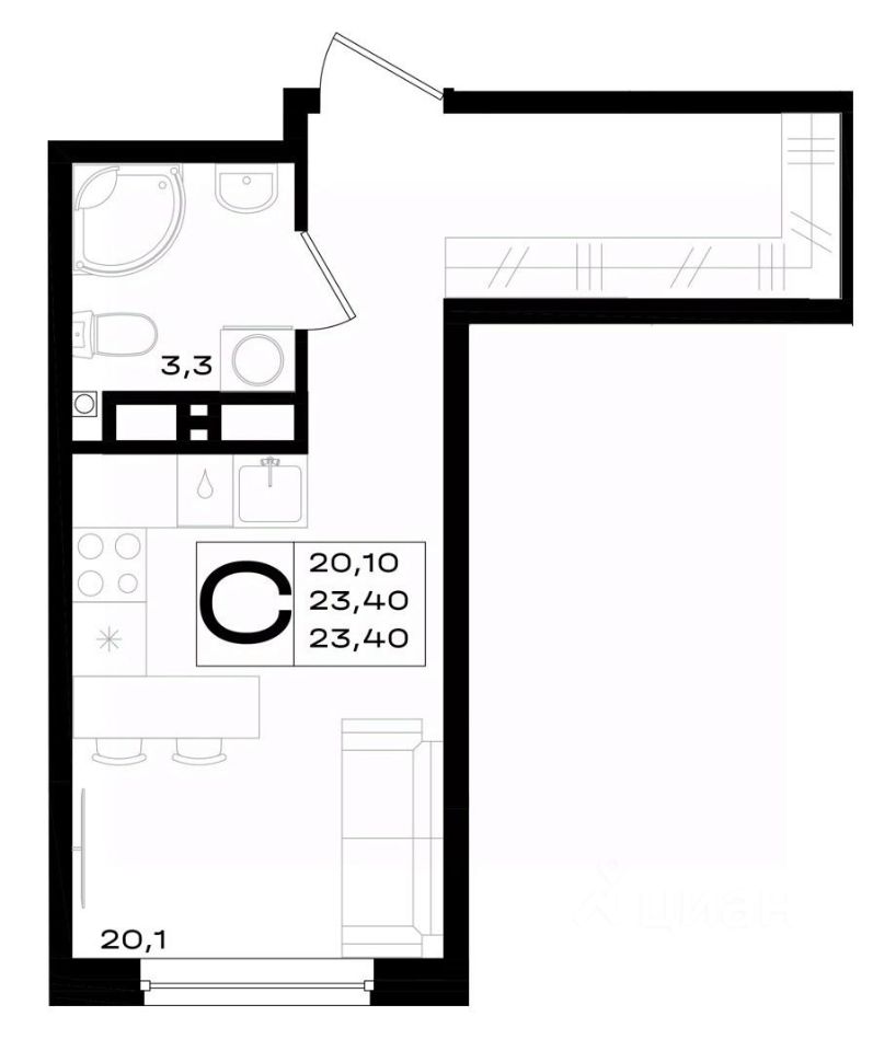 23,4 м²