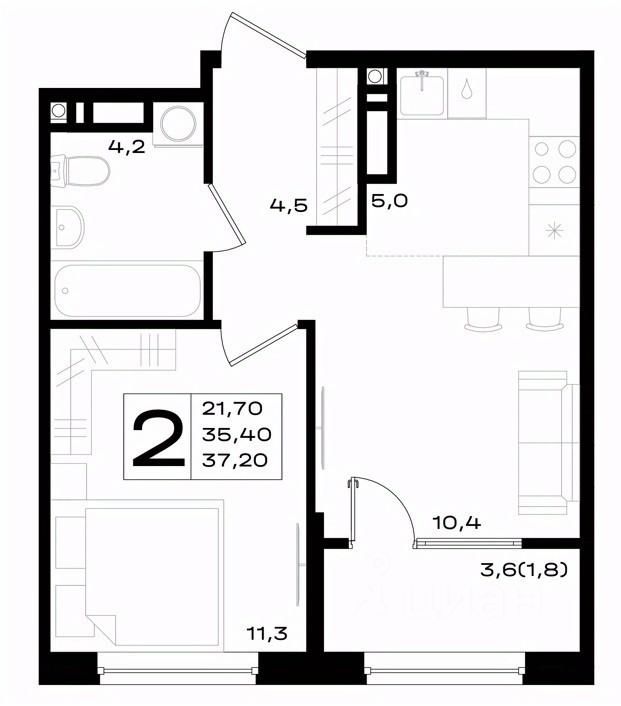 Общая площадь37,2 м²