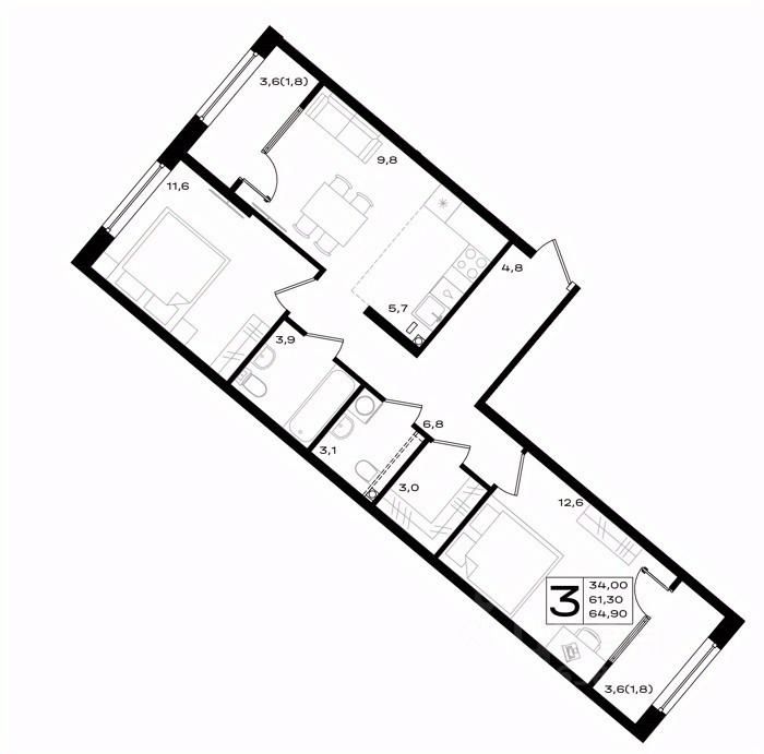 64,9 м²