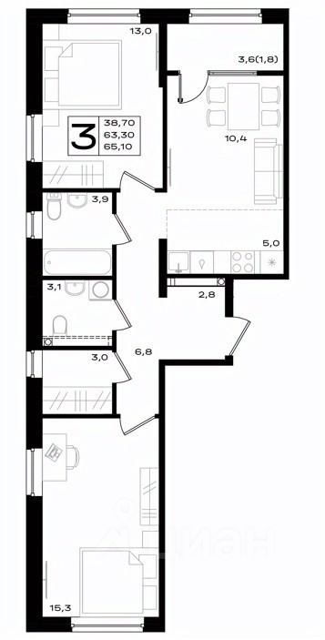 65,1 м²