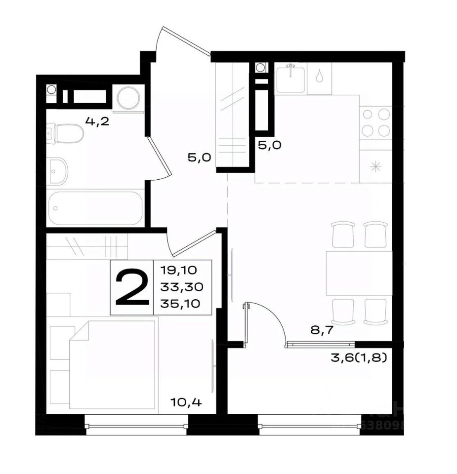 Общая площадь35,1 м²