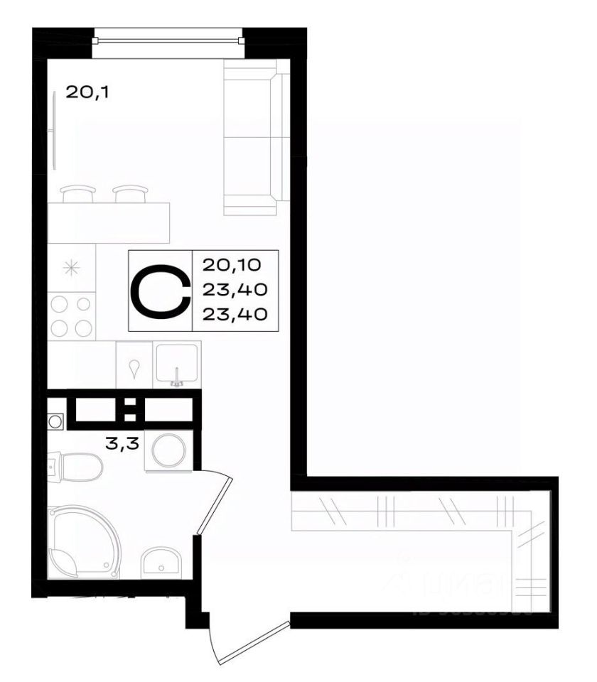 Общая площадь23,4 м²