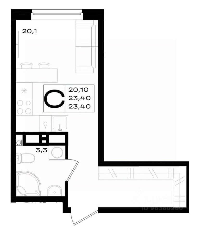 23,4 м²