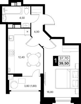 Общая площадь39,5 м²