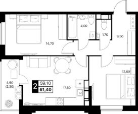 Общая площадь61,4 м²