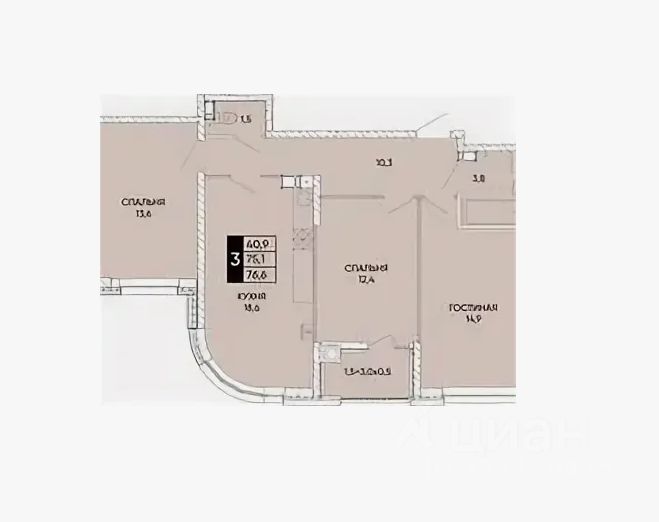 Большая трехкомнатная квартира (76,6 м )