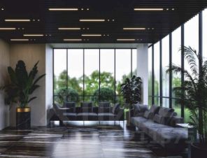 4. Входная группа включает высокие потолки в лобби, панорамное остекление, высококачественную отделку , лаунж-зону, консьерж-сервис 24/7, гостевой санузел, помещения для хранения колясок, мойка для лап собак после прогулки.