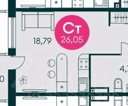 Удобная планировка с просторной комнатой. Сан узел совмещенный.