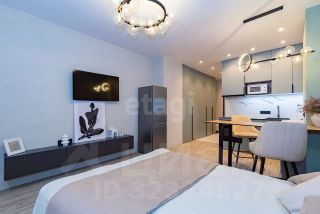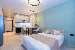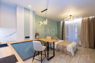 Студия площадью 27,6 м² расположена на 19 этаже современного 25-этажного кирпичного дома, сданного в эксплуатацию в 2022 году. Планировка продумана до мелочей: компактная кухонная зона, функциональные системы хранения и спальное место эргономично организованы в едином пространстве. Лоджия с выходом во двор добавляет полезной площади и обеспечивает дополнительное естественное освещение. В помещении выполнен качественный дизайнерский ремонт с продуманной отделкой, установлен кондиционер, что создает комфортные условия для проживания. Совмещенный санузел оформлен в современном стиле с практичными материалами.