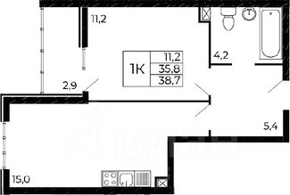 38,7 м²
