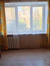 Квартира одна комната, тип - гостиная. Предпоследний этаж из пяти. Без лифта.  Окна выходят во двор и до дома напротив очень большое пространство, что обеспечивает чистый воздух и отсутствие кухонных запахов  от соседей, из подъезда при выходе через двор с детской площадкой и проездную улицу - школа. До остановки 1 минута пешком. Окно - пластик. Новое. С одной стороны с москитной сеткой. Счётчик электро поменяли. Для воды есть необходимость поменять нагревательный прибор. Готовы на  эту сумму скинуть.  Торговые центры, аптеки, кафе - по улице, где расположена остановка, собственно, рядом в двух минутах от дома. 2 автобуса в центр города - 22 и 90.  Кухня справа при входе - электро без перегородки.  Слева - душевая и унитаз - за дверью.  Ламинат в комнате в прихожей и кухне - линолиум. Квартира тёплая, уютная. Соседи хорошие. Транспорт паркуют рядом с домом.