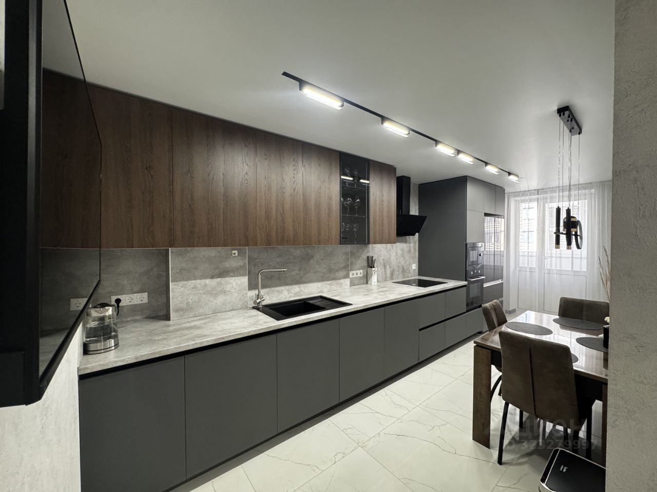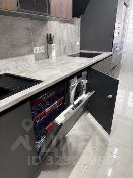 1. Кухня - укомплектована полностью (встроенная духовка, микроволновка, стиральная машина с функцией сушки, посудомойка 60см, большой холодильник, плита, вытяжка, система осмоса - из крана питьевая вода). Трековый свет, led подсветка столешницы и стеклянного ящика, на полу керамогранит 75х75, выход на лоджию, ТВ с Алисой 43".