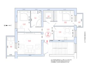 Площадь квартиры с балконами - 91.5 кв.м.