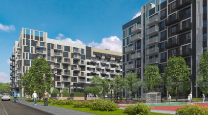 экорайон в окружении рощи, леса и цветущих лугов концепция "двор без машин" освещение придомовой территории безбарьерная среда территории многофункциональные спортивные площадки детские площадки в индивидуальном исполнении велодорожки на территории зоны отдыха с перголами для взрослых тактильные тропы для пеших прогулок грядки добрососедства для выращивания растений