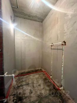 Санузел с гидроизоляцией подготовлен для укладки плитки. Трубы в термооболочке.