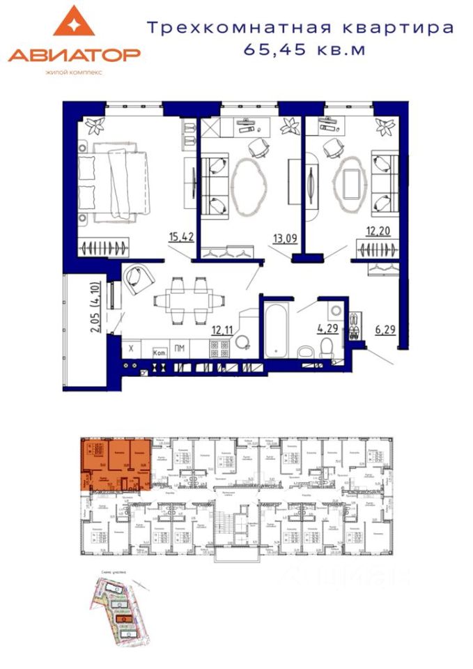 Общая площадь65,45 м²
