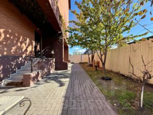 Кирпичный дом 2012 года. Закрытый задний двор с зоной отдыха и мангальной зоной, детская площадка.